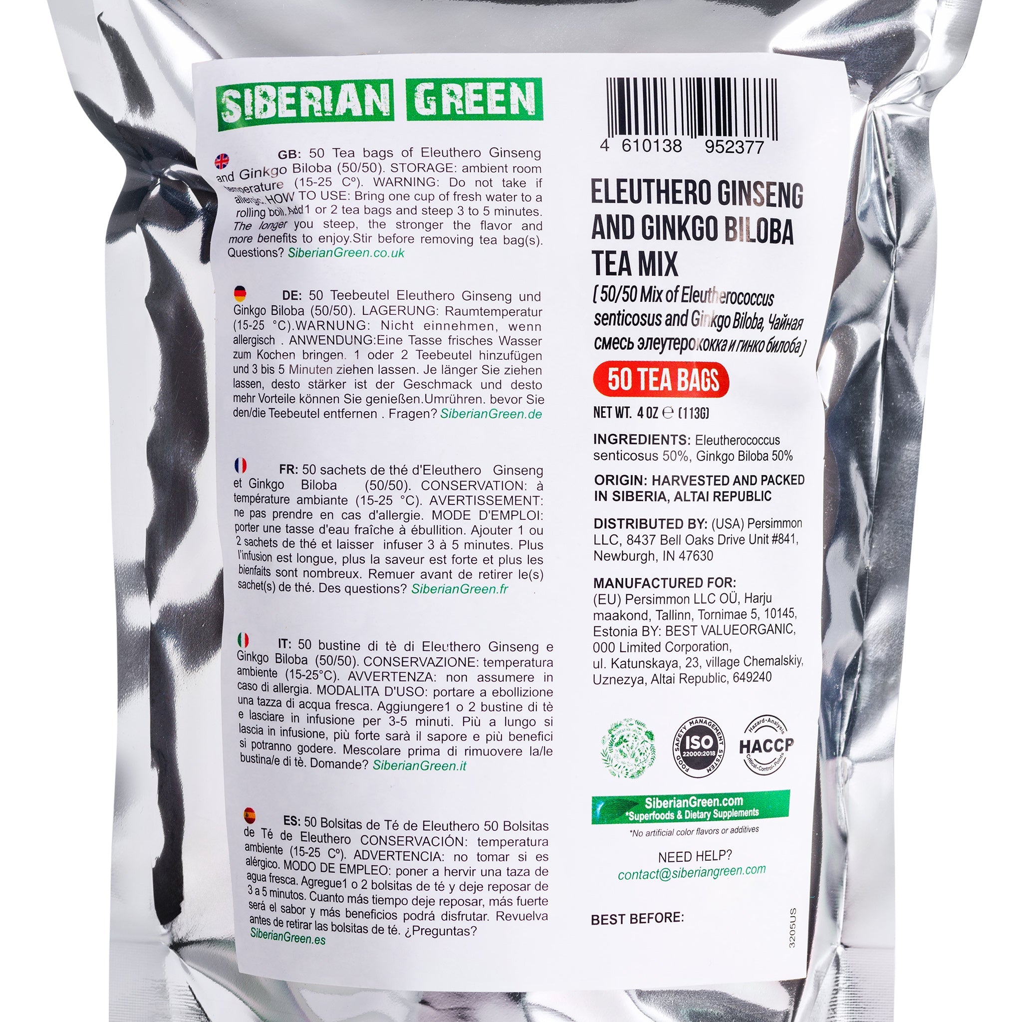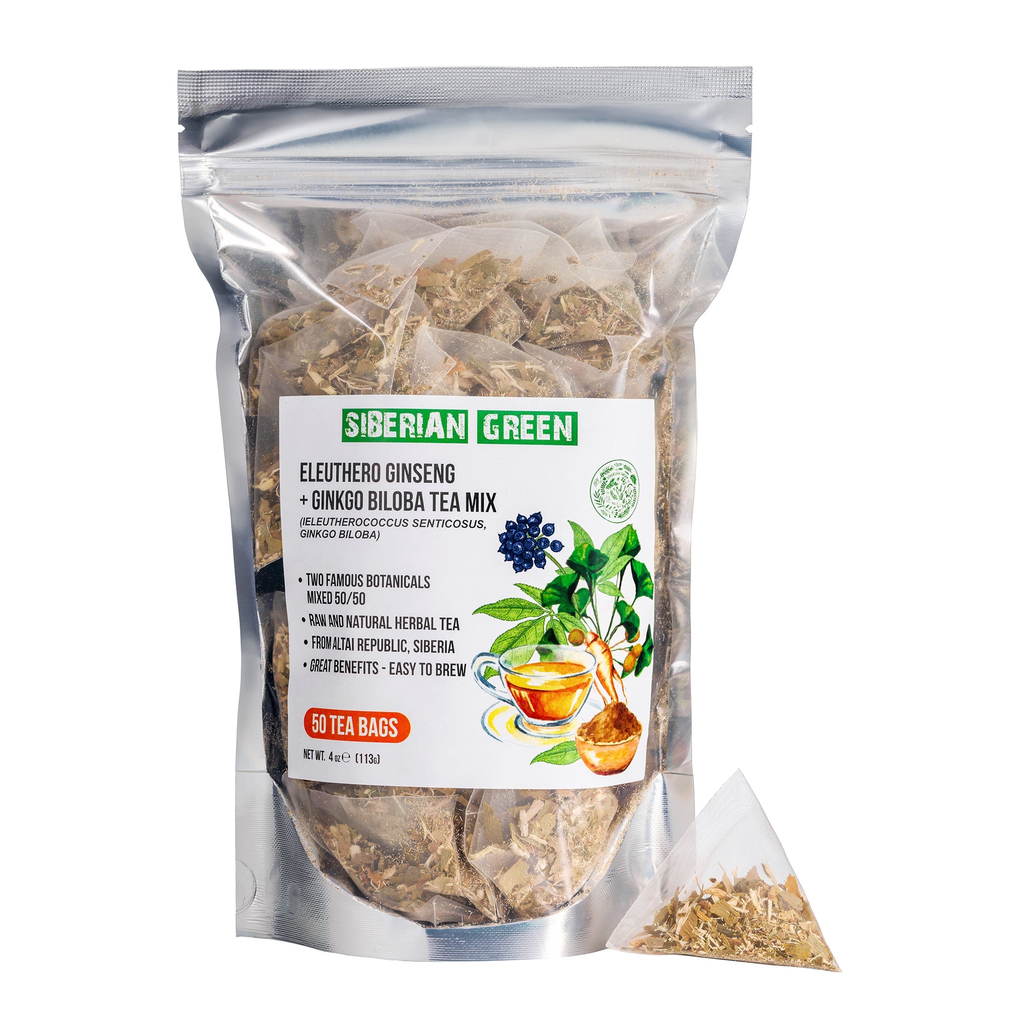 Erleben Sie die perfekte Harmonie der Natur mit Siberian Green Ginkgo Biloba & Eleuthero Root Tea. Diese einzigartige 50-50-Kräutermischung wird direkt aus der unberührten Altai-Republik in Sibirien bezogen und kombiniert die erdige Fülle der Eleuthero-Wurzel mit den sanften, duftenden Noten von Ginkgo Biloba. Jede Tasse ist rein, natürlich und frei von gentechnisch veränderten Organismen, künstlichen Aromen oder Zusatzstoffen und garantiert höchste Qualität bei jedem Schluck.