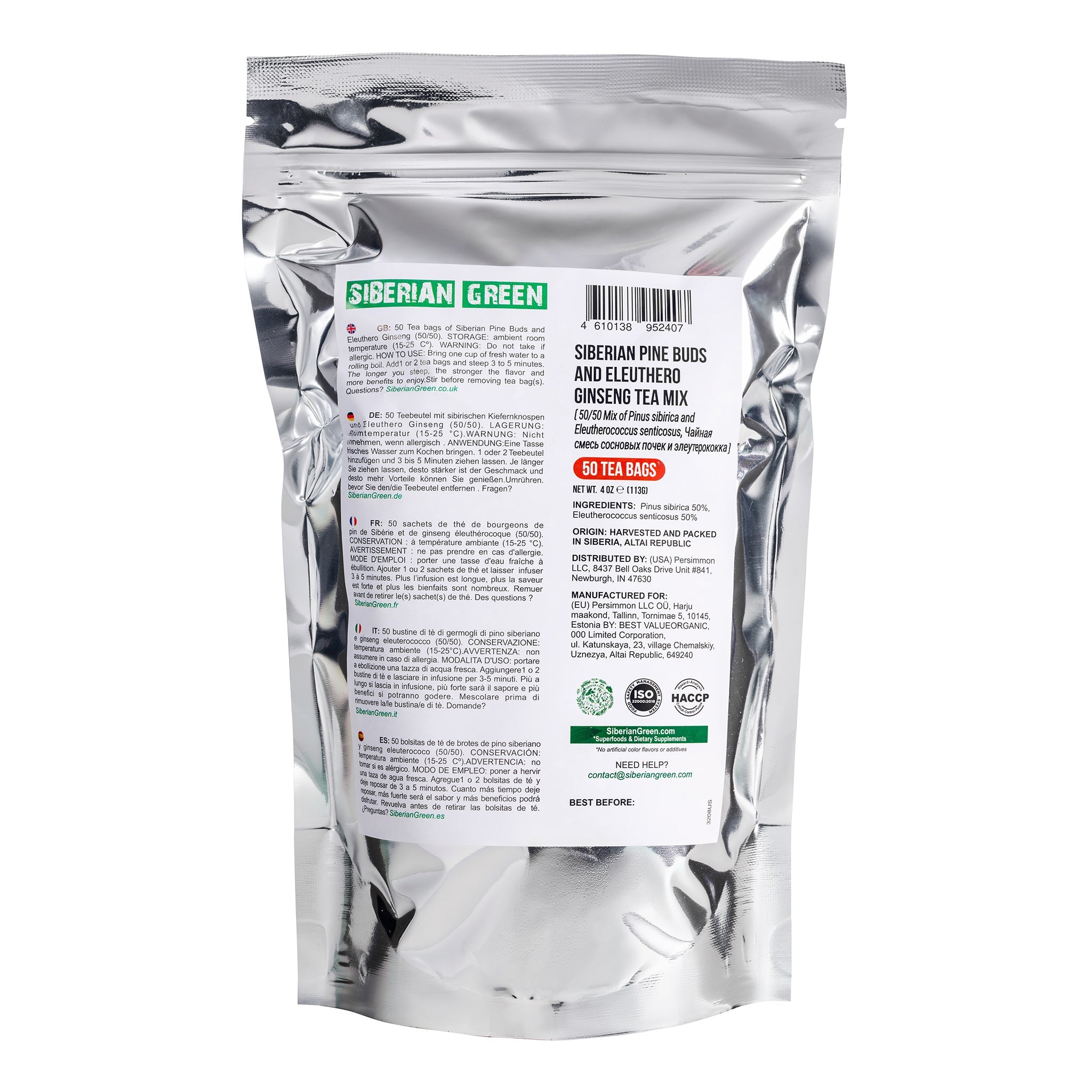 Siberian Green ist eine Elite-Kräuterteemischung, die wild geernteten sibirischen Ginseng (Eleuthero-Wurzel) und sibirische Kiefernknospen aus der Altai-Region kombiniert. Diese beiden Zutaten sind für ihre gesundheitlichen Vorteile bekannt und wirken nahtlos zusammen, um einen koffeinfreien Energieschub zu liefern, das Immunsystem zu unterstützen und das Wohlbefinden zu fördern. Außerdem werden die Teebeutel auf natürliche Weise ohne Konservierungsmittel, Zusatzstoffe oder künstliche Aromen hergestellt. Das ist pure sibirische Güte in jeder Tasse!