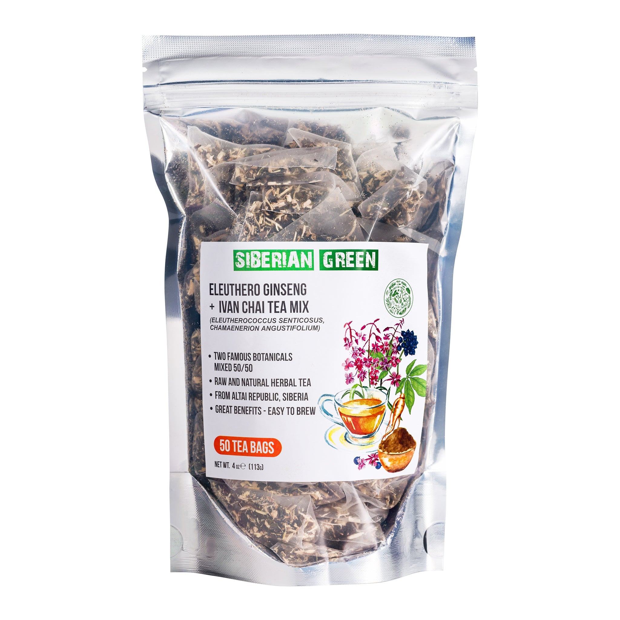 Die Kräutermischung aus Sibirischer Grüner Eleuthero-Wurzel und Iwan-Tee bietet die perfekte Balance, um Körper und Geist zu nähren. Dieser Tee besteht zu 50/50 aus Eleuthero-Wurzel und Rosebay-Ivan-Tee. Er hat einen weichen, süßen, blumigen Geschmack, der einzigartig und angenehm ist.